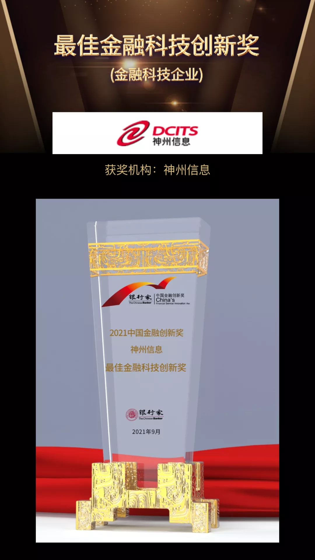 立足建党百年和“十四五”规划的开局之年,近日,由《银行家》杂志主办的“中国金融创新论坛暨2021中国金融创新成果线上发布会”在京召开,旨在表彰中国金融创新力量。神州信息自主研发的金融超脑Sm@rtFSB和 “银税直连”助力金融服务中小微案例分别荣获2021“最佳金融创新奖”和“十佳普惠金融科技创新奖”两项大奖;其中“最佳金融创新奖”仅有四家公司获评。在众多参选案例中脱颖而出,连续摘得行业重量级奖项,神州信息已成为金融科技创新的风向标。